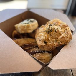 Great vibes, great coffee, great grub. What else could you ask for? Love this spot as do locals and visitors alike. Savory and sweet pastries were yummy - tried the bacon and cheddar scone, artichoke and spinach wheel, and the chocolate croissant. All were light, flaky and full of flavor. My almond milk latte was smooth and creamy. Add this place the rotation.